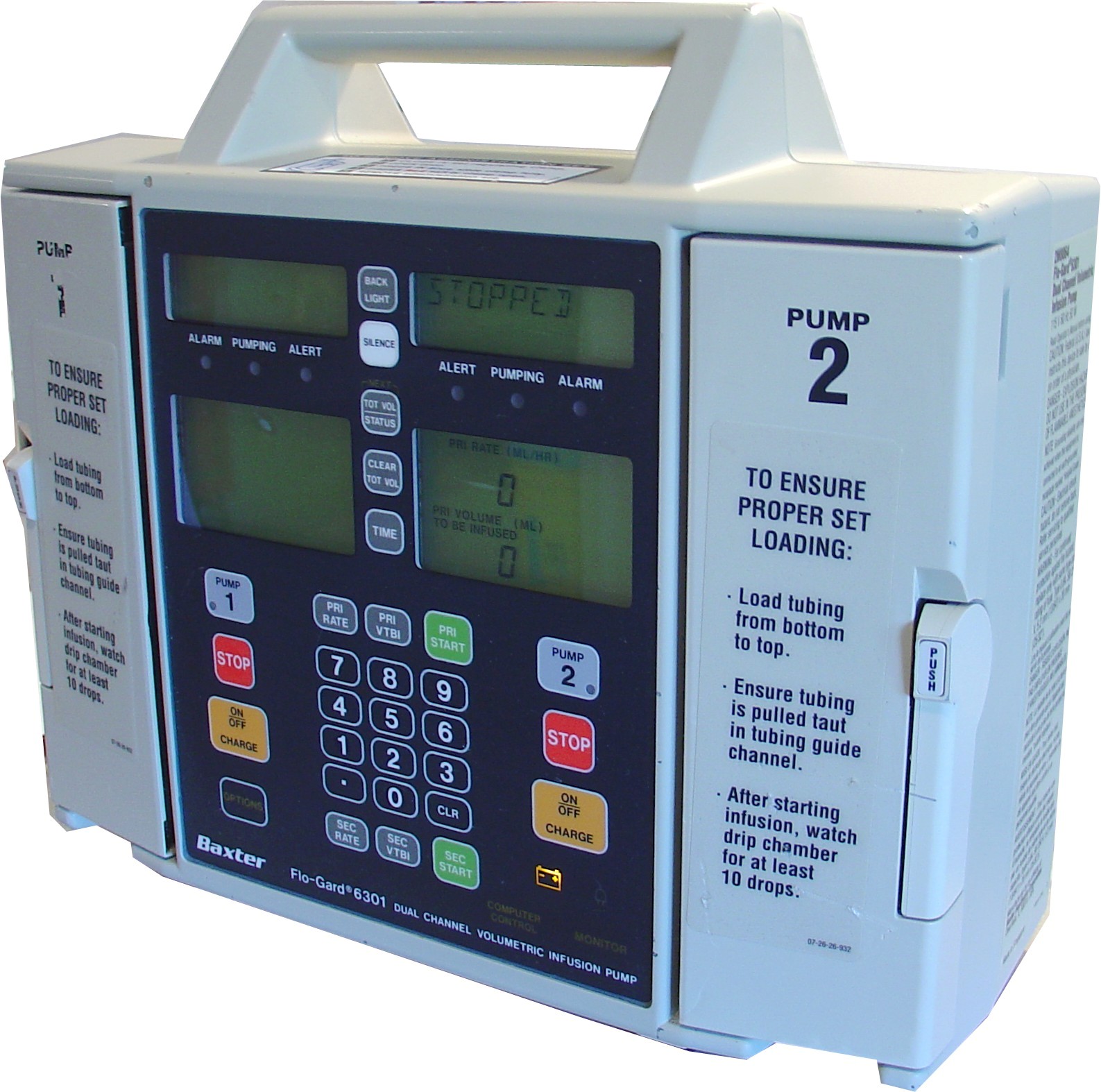 The Baxter Flo-Guard® 6301 Dual Channel Infusion Pump is an easy, convenient, cost-effective infusion therapy device for ambulatory, home-care, and oncology settings.  Simple to operate, the Flo-Guard® 6301 offers versatility and enhanced safety features while maintaining cost effective and low maintenance qualities not available in most similar units.